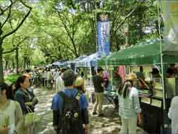 本日(5/17)朝から、うつぼ公園の『バラ祭』へ行ってきました。 本日のバラ園の様子は、本当に真夏を感じさせるくらい暑いです。しかし、バラさんたちは精一杯花を咲かせており、ちょっとかわいそうな気もします。っで、バラの様子は、「バラ情報」に掲載していますので、こちらでは、「バラ祭り」の様子をお伝えします。地下鉄四ツ橋筋線本町を出て、うつぼ公園へ。うつぼ公園手前に「富山第一銀行」があり、その前で「バラ祭り」ということで、「富山県の物産展」みたいな感じの出店を出されています。(知り合いが手伝いをしています)まずはそこで、富山の美味しい地酒のきき酒4種をいただきました。 ほろ酔い気分で、うつぼ公園に突入です。やはり、バラ祭りということで、うつぼ公園中央大通りは、出店と人でいっぱいでした。 出店では、いろいろな手作りアクセサリーや、おもちゃなどを売られていました。なにかフリーマーケットのような本当に気さくな買い物ができそうです。京町堀にあるインテリアのお店「hikosen style(飛行船スタイル)」の方も出店されていました。 出店では、ビールにケバブもあり、立ち食いも楽しめます。その隣でトルコアイスもあり、トルコアイスの妙技もあり、本当に楽しいお祭りです。 信州の野菜やら、愛媛の野菜がお店に並んでいます。(写真は信州の野菜を販売されているところです) うつぼ公園中央大通りの東側ランドアバウトには、「うつぼ公園バラ祭り」の実行委員の方のテントが・・・本当に楽しく、活気にあふれる催し物を実行されている実行委員の方に感謝です。是非、みなさんもこの週末、うつぼ公園に足を運ばれてみては、いかがでしょうか!楽しめること、間違いなしです。