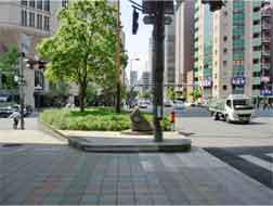 御堂筋の信号を渡り、日本銀行ファスティバルホールなどをとおり、四つ橋筋に。