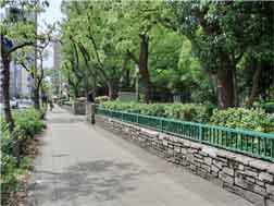 わたしの京町堀に通うコースでもあり、わたしのお気に入りの散策コースです。歩いておよそ30分ぐらいでバラ園からバラ園をはしごできるのです。