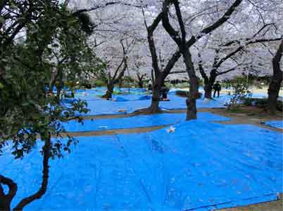 【さくら情報】今日は花金(はなきん) 投稿日時 : 2012/04/06 運営管理者 カテゴリ:人の様子 やはり、金曜日です。グランドは、まだ午前中にもかかわらず、陣取りのブルーシートでいっぱいです。桜の木下は、もう満杯状態。みなさん名前/何時から始めるか/連絡先などを書いた紙をブルーシートに貼って場所を確保されています。しかし、昨夜雨が降ったせいで、昨日から敷かれているブルーシートの上には水たまりが・・・花見の前には、がんばってブルーシート上の水取りが必要です。