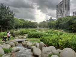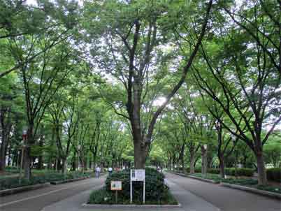 公園には、ジョギングする人、ぶらぶらと散歩する人がおおく見受けられます。