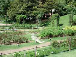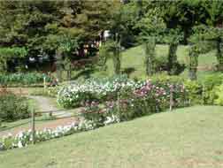 バラ園の丘を下ると所々にバラの花が見受けられます。