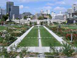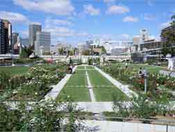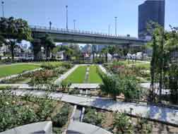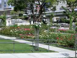 本日は、京町堀/うつぼ公園には関係ないのですが、大阪中心部にあるもうひとつのバラ園、中之島のバラ園の本日の様子も掲載します。やはり、まだ緑みどりしていました。