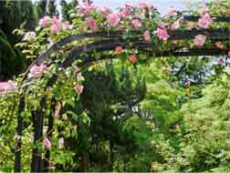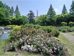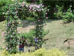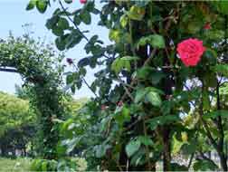 公園事務所の方が手入れされ、バラ園東側の丘のアーチにちらほらとバラが・・・