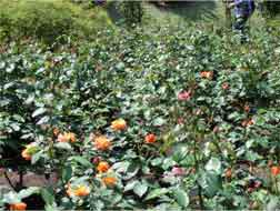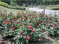 テニスコート側からバラ園の丘への階段横ですが、やはり時期的なもので、バラの花びらが沢山落ちており、そろそろといった感じが・・・・