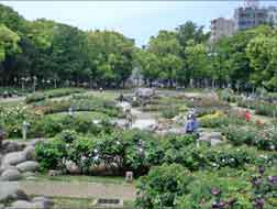 しかし、やはり都会の真ん中っと言った感じで、バラ園もモダンですね。中之島はモダンで近代的なバラ園に対し、うつぼ公園のバラ園は、木々が沢山あり、自然派といった感じです。