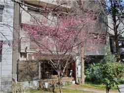 テニスコート裏のさくら・・・、もう花をつけていました?????