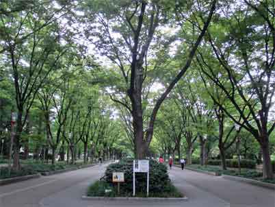 公園には、ジョギングする人、ぶらぶらと散歩する人がおおく見受けられます。